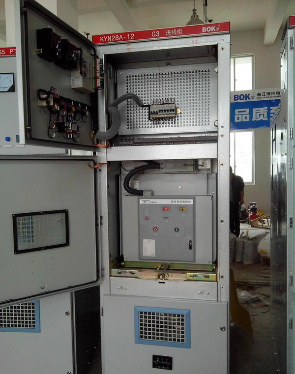 KYN28(GZS)型戶內(nèi)金屬鎧裝抽出式開(kāi)關(guān)設(shè)備(以下簡(jiǎn)稱開(kāi)關(guān)設(shè)備)。該開(kāi)關(guān)設(shè)備系3-10KV三相交流50Hz單母線分段系統(tǒng)的成套配電裝置。主要用于發(fā)電廠、中小型發(fā)電機(jī)送電、工礦企事業(yè)配電以及電業(yè)系統(tǒng)的二次變電所的受電、送電及大型高壓電動(dòng)機(jī)起動(dòng)等,實(shí)行控制保護(hù)、監(jiān)測(cè)之用。具有防止帶負(fù)荷推拉斷路器手車、防止誤分合斷路器、防止接地開(kāi)關(guān)處在閉合位置時(shí)關(guān)合斷路器、防止誤入帶電隔室、防止在帶電時(shí)誤合接地開(kāi)關(guān)的聯(lián)鎖功能,既可配用VS1真空斷路器,也可配用ABB公司的VD4真空斷路器,是一種性能優(yōu)越的配電裝置。